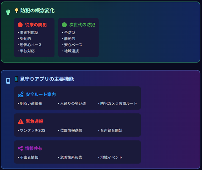これからの防犯グッズは、「万が一に備える」というより、「安心を日常に取り入れる」方向へ進んでいく気がします。地域での見守りアプリと連携して、危ないエリアの情報を共有できるような仕組みも広がりつつありますね。